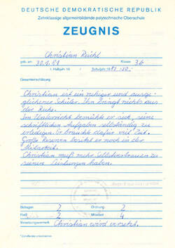 Anhand des Dokumentenkopfs der Zeugnisse aus den Jahren 1989 bis 1991 lassen sich diese Transformationen sichtbar machen: Die zehnklassige Polytechnische Oberschule (POS) wurde abgeschafft und Zeugnisvordrucke änderten sich entsprechend.