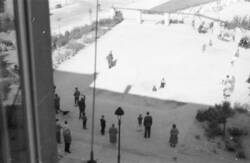 Mit ihrer Kamera halten sie heimlich den Aufbau der ersten Betonmauer durch Kranwagen in einer Bilderserie fest. Auf diesen Aufnahmen ist gut erkennbar, wie die DDR-Grenzpolizisten die neugierigen Anwohnerinnen und Anwohner auf Abstand vom Geschehen halten. Einige winken herüber, denn auch auf der anderen Seite beobachten West-BerlinerInnen die Errichtung der Mauer.