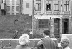 Entlang der Zimmerstraße fahren US-Panzer auf, während West-Berliner Kinder das Geschehen von den Trümmerbergen verfolgen. Im Verlauf der nächsten Tage wird die erste Mauer aus Betonelementen errichtet, auf der Zimmerstraße patrouillieren die DDR-Grenzpolizisten.