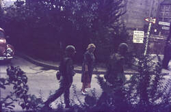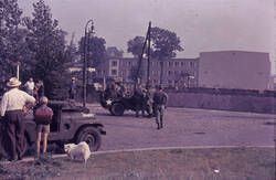 Unmittelbar nach dem Mauerbau zeigt die US-Armee militärische Präsenz, um ein Übergreifen über die Sektorengrenze zu verhindern und die West-Berliner Bevölkerung zu beruhigen. Die US-Soldaten treten freundlich mit den AnwohnerInnen des Viertels in Kontakt.