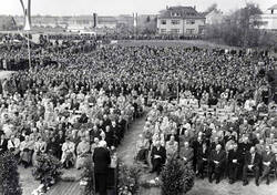 You might recognize the person standing on the rostrum outside the building in the picture: Ernst Reuter, then Mayor of Berlin. On April 14, 1953, he welcomed guests to the official opening ceremony. The Federal President of West Germany, Theodor Heuss, was also present and delivered the opening speech.