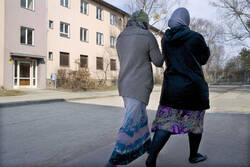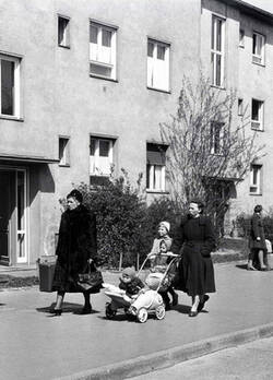 Now, head back to the museum entrance. As you walk along Marienfelder Allee, you will hear more voices from our archive of contemporary witnesses. The interviewees lived here at different times and for varying lengths. Their memories offer personal insights into the experience of arriving and living in Marienfelde.